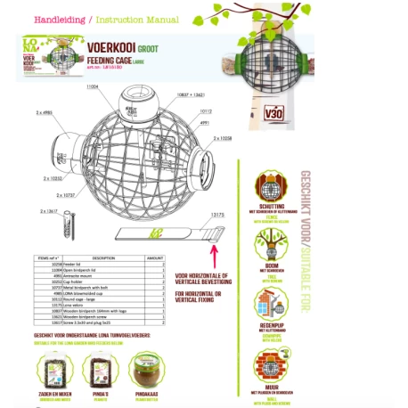 LONA V30 est une cage d’alimentation ronde qui protège les petits oiseaux de jardin contre les prédateurs naturels tels que les chats et les grands oiseaux, leur permettant de se nourrir en toute tranquillité. Avec 2 unités d’alimentation et un porte-pot de beurre d’arachide avec barre de trapèze, il a toutes les garnitures nécessaires pour donner aux petits oiseaux de jardin juste ce dont ils ont besoin. . Le V30 peut également être utilisé avec du beurre d’arachide LONA. Une vue fantastique! Et les oiseaux adorent le beurre d’arachide LONA.