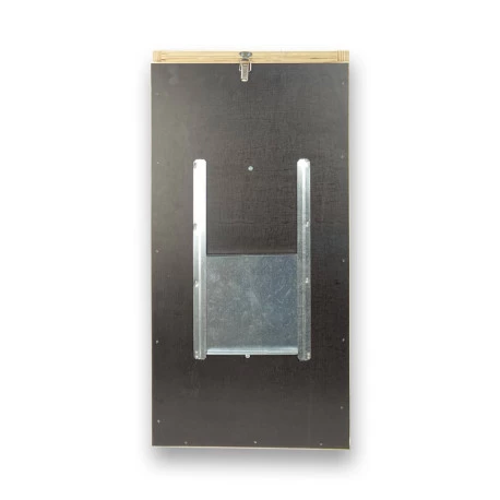 L’échelle à l’intérieur de la cabine facilite l’entrée et la sortie de l’oiseau. Comprend un renfort métallique sur les deux ouvertures circulaires. Porte de visite type guillotine à droite en tôle galvanisée.