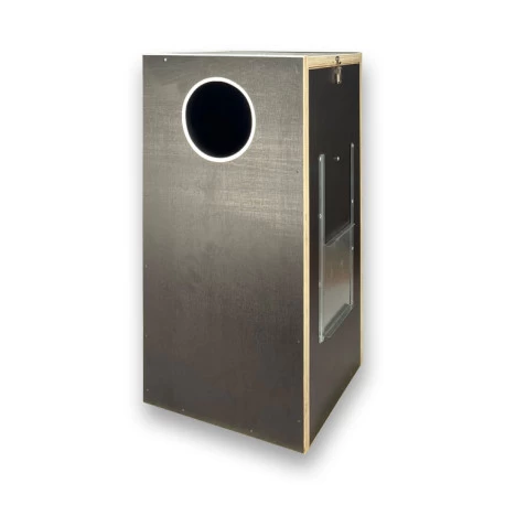 Nichoir en contreplaqué de peuplier marin, avec film noir. Produit à haute résistance à l’eau et à l’humidité.